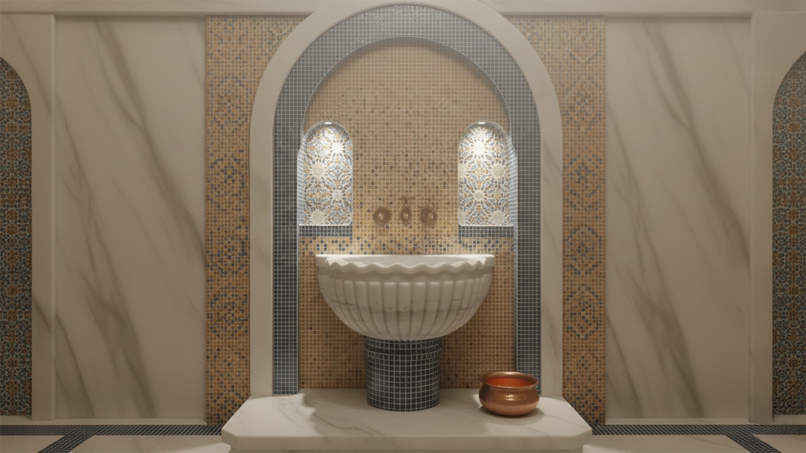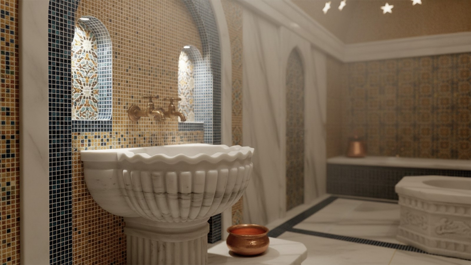 Накладная курна для хамама Albertina Fonda вырезана из цельного блока натурального камня - мрамора сорта Clouds (ИСПАНИЯ) белого цвета, c непостоянный пятнистой текстурой. Эта мраморная чаша нестандартной формы, с орнаментом может быть установлена на подставку, столешницу или скамью в турецкой бане - хамаме. Также вы можете заказать у нас производство этой курны для хамама по индивидуальным размерам, дизайну или из другого материала изготовления. Для того, чтобы она оптимальным образом вписалась в интерьер места установки как с точки зрения дизайна, так и путем точного соответствия необходимым вам техническим и физическим параметрам изделия. При этом производство под заказ есть смысл планировать только в случае, когда у вас есть запас по времени 90 дней и более с момента согласования всех параметров заказного изделия и подписания Договора Поставки.
