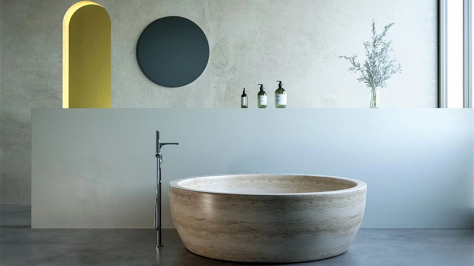 - Каменная ванна Bowl M24 из натурального травертина 170×170×80