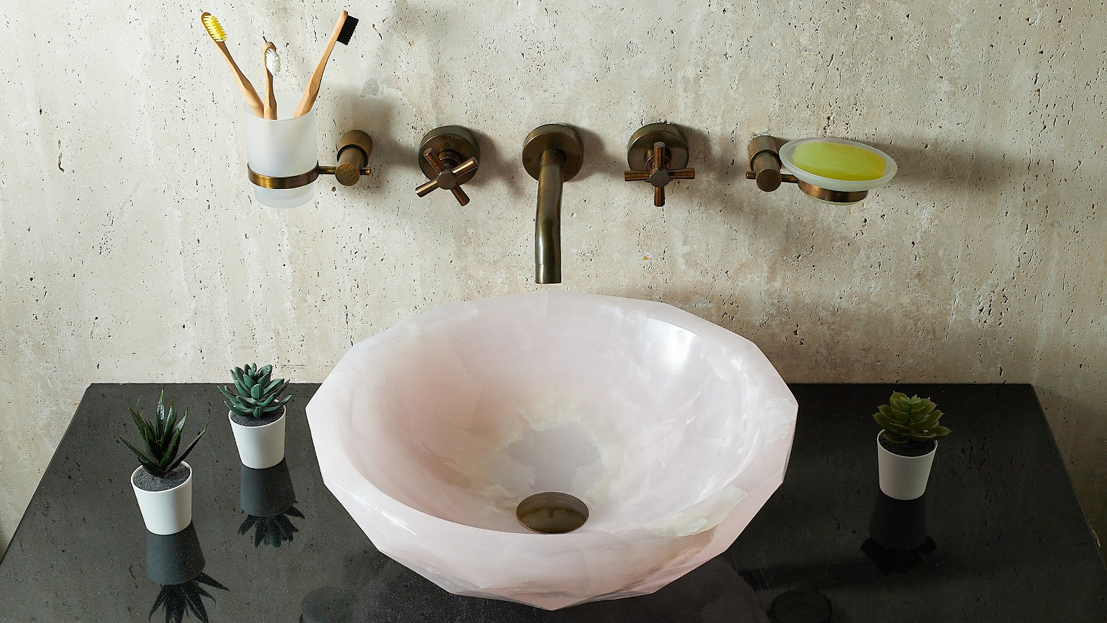 Каменная мойка круглой формы Bowl с глянцевой фактурой может быть установлена как на обычную подставку, тумбу или столешницу в ванной комнате, так и в качестве курны для турецкой бани хамама. Эта накладная раковина вырезана из цельного блока натурального камня оникса Pink Onyx (ИРАН) розового цвета c стабильный с прожилками текстурой. Также вы можете заказать у нас производство этой раковины под заказ по индивидуальным размерам, дизайну или из другого материала изготовления. Для того, чтобы она оптимальным образом вписалась в интерьер места установки как с точки зрения дизайна, так и путем точного соответствия необходимым вам техническим и физическим параметрам изделия. При этом производство под заказ есть смысл планировать только в случае, когда у вас есть запас по времени 90 дней и более с момента согласования всех параметров заказного изделия и подписания Договора Поставки.