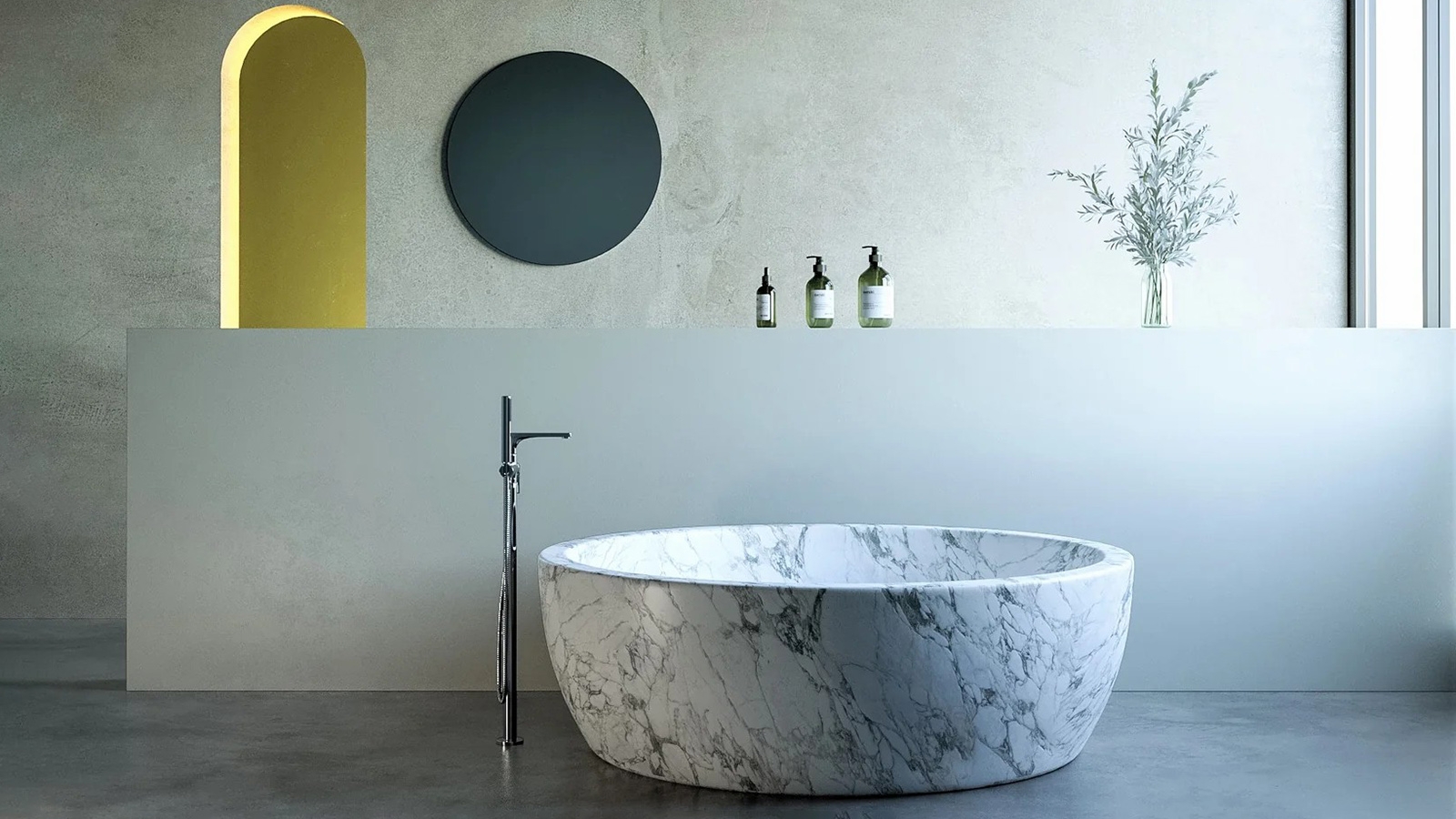 Каменная ванна Bowl Bathtub вырезана из цельного блока натурального камня - мрамора Statuario (ИТАЛИЯ) белого цвета, c непостоянный с прожилками текстурой. Эта мраморная ванна круглой формы с матовой фактурой может быть установлена в ванной комнате квартиры или загородного дома. Также вы можете заказать у нас производство такой ванны по индивидуальным размерам, дизайну или из другого материала изготовления. . Для того, чтобы она оптимальным образом вписалась в интерьер места установки как с точки зрения дизайна, так и путем точного соответствия необходимым вам техническим и физическим параметрам изделия. При этом производство под заказ есть смысл планировать только в случае, когда у вас есть запас по времени 90 дней и более с момента согласования всех параметров заказного изделия и подписания Договора Поставки.
