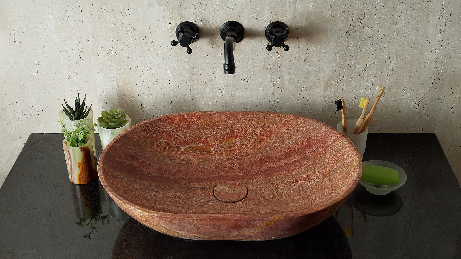 Каменная раковина Cioto из красного травертина Red travertine 936584011