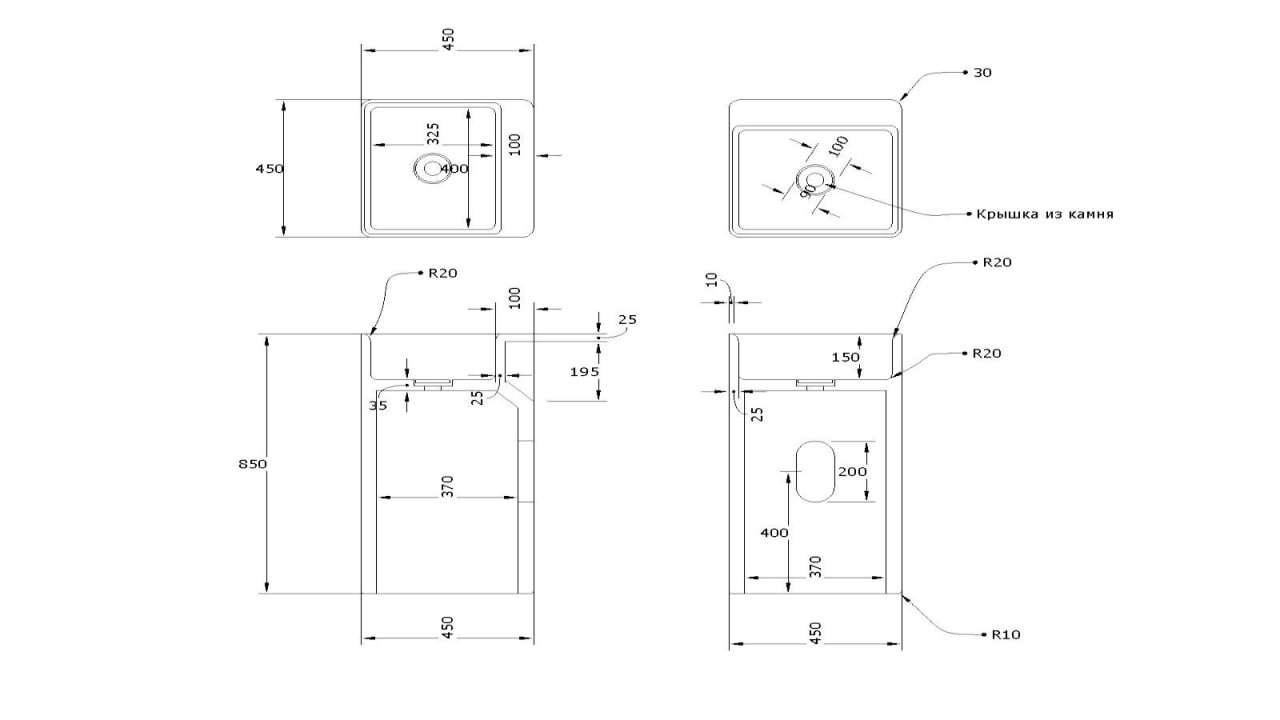 - Вырез под слив: