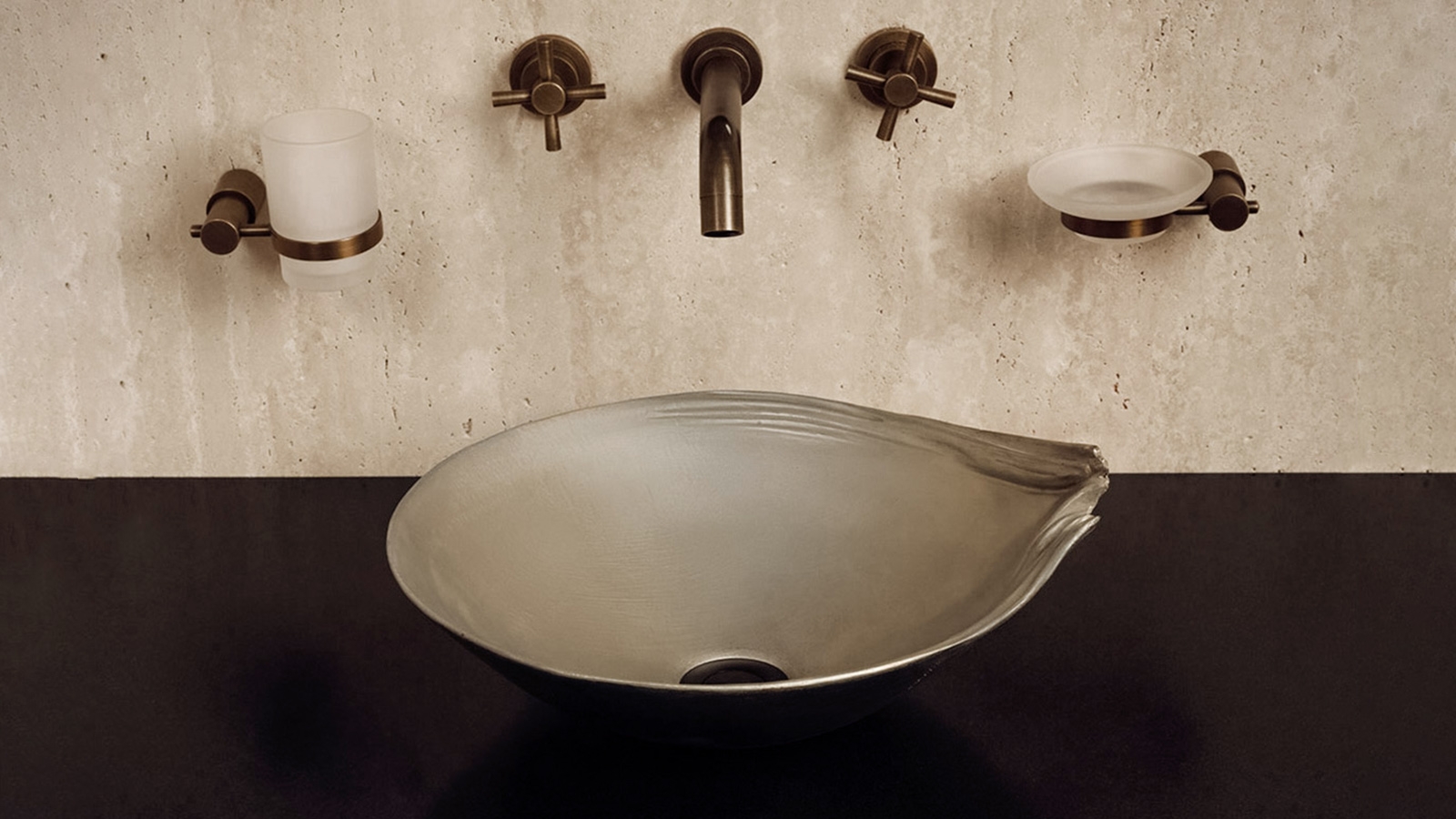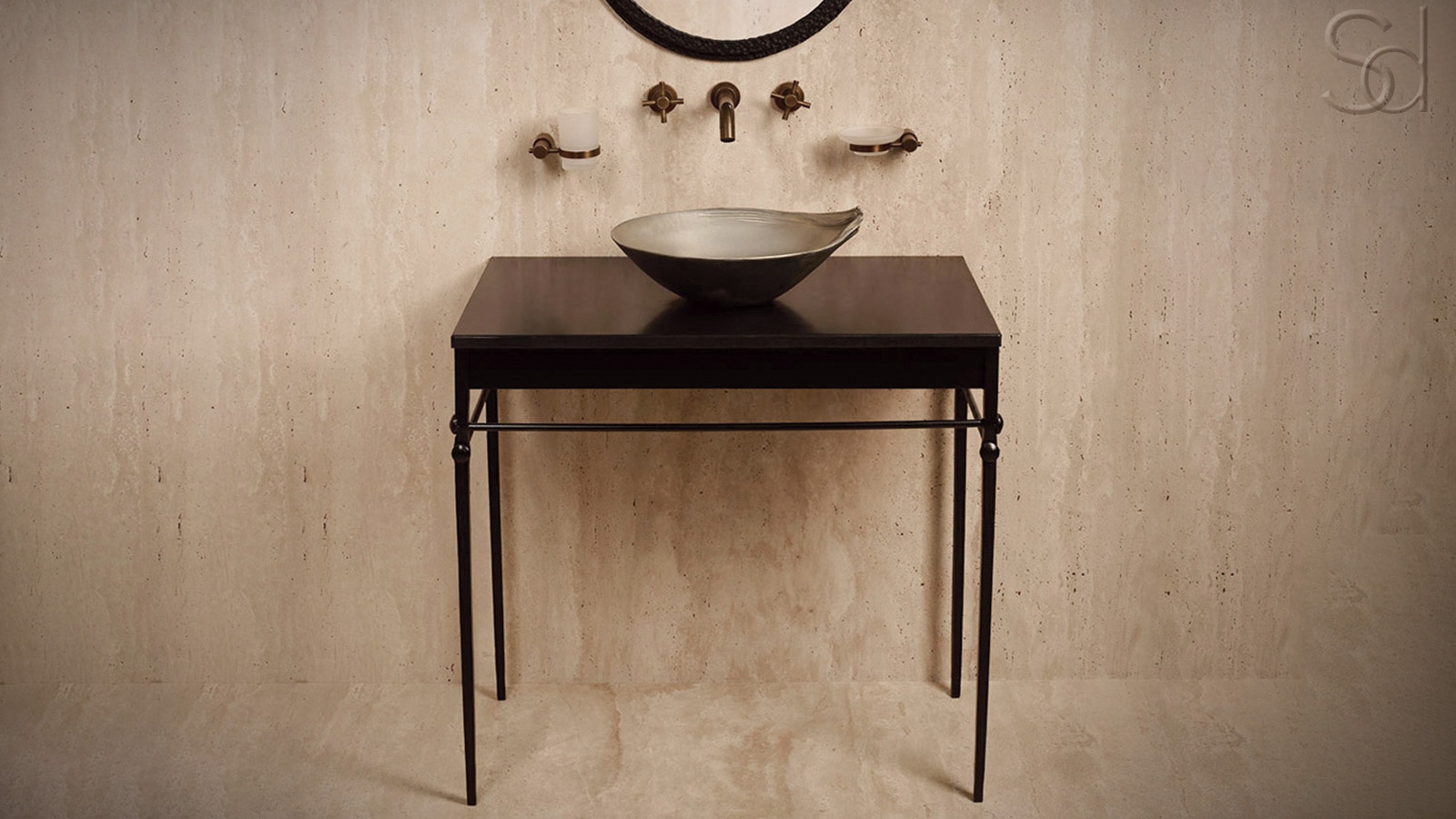 Нестандартной формы бронзовая мойка Frume с металлизированной фактурой может быть установлена на обычную подставку, тумбу или столешницу в ванной комнате. Эта накладная раковина была вылита из сплава бронзы Chrome Bronze (ИНДОНЕЗИЯ) c стабильный однотонной текстурой. Также вы можете заказать у нас производство такой раковины под заказ по индивидуальным размерам, дизайну или из другого материала изготовления. Для того, чтобы она оптимальным образом вписалась в интерьер места установки как с точки зрения дизайна, так и путем точного соответствия необходимым вам техническим и физическим параметрам изделия. При этом производство под заказ есть смысл планировать только в случае, когда у вас есть запас по времени 90 дней и более с момента согласования всех параметров заказного изделия и подписания Договора Поставки.
