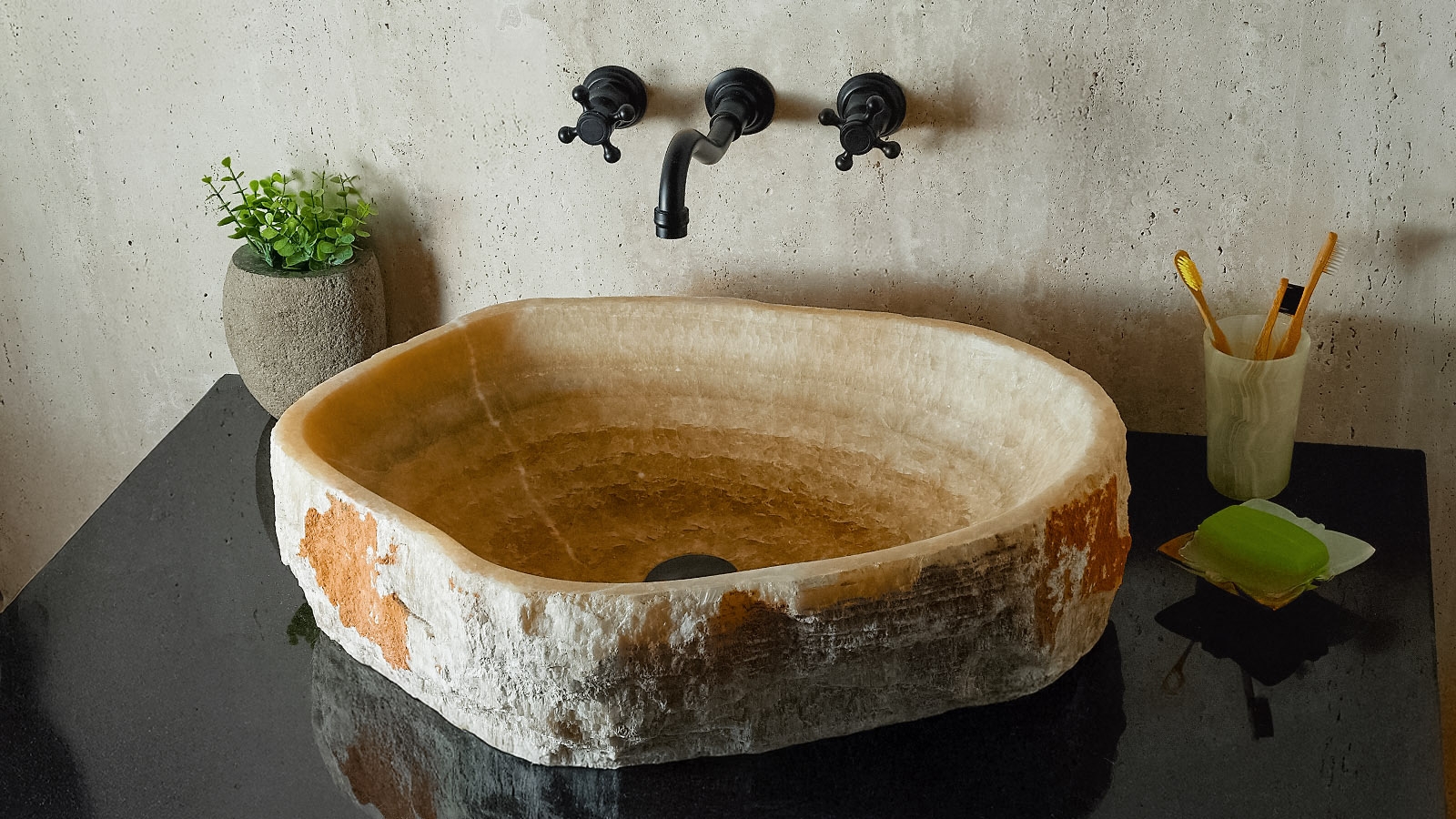 Накладная раковина Hector S89L вырезана из цельного блока натурального камня оникса Honey Onyx (ИНДИЯ) желтого цвета c непостоянный кристальной текстурой. Эта каменная мойка природной формы с природной фактурой может быть установлена как на обычную подставку, тумбу или столешницу в ванной комнате, так и в качестве курны для турецкой бани хамама. Также вы можете заказать у нас производство этой раковины под заказ по индивидуальным размерам, дизайну или из другого материала изготовления. Для того, чтобы она оптимальным образом вписалась в интерьер места установки как с точки зрения дизайна, так и путем точного соответствия необходимым вам техническим и физическим параметрам изделия. При этом производство под заказ есть смысл планировать только в случае, когда у вас есть запас по времени 90 дней и более с момента согласования всех параметров заказного изделия и подписания Договора Поставки.