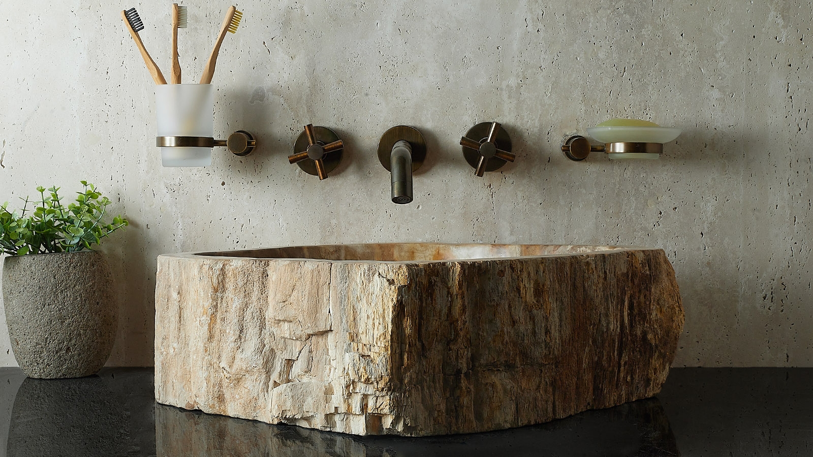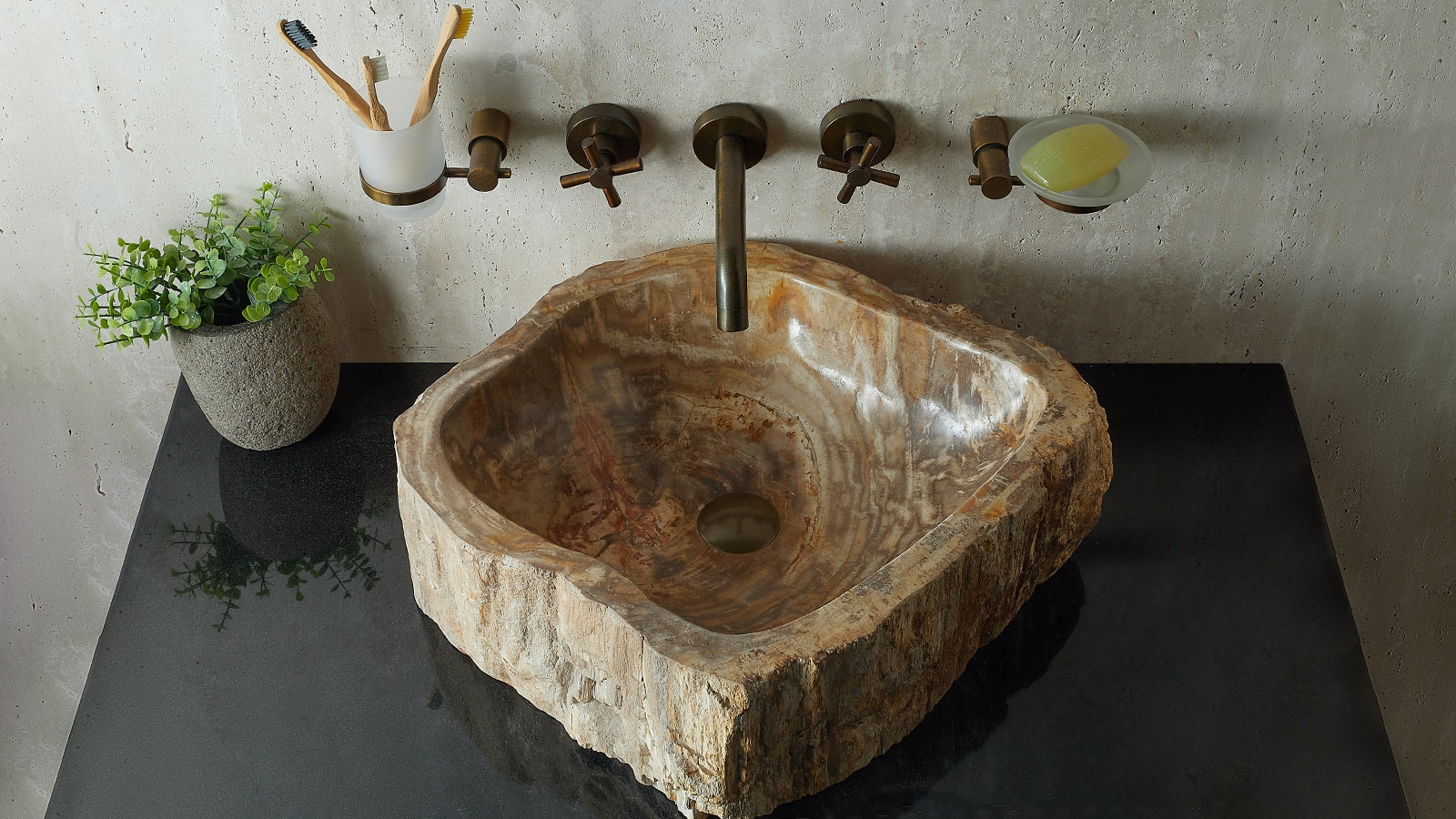 Накладная раковина Hector S85 вырезана из цельного блока натурального дерева окаменелого дерева Petrified Brownwood (ИНДОНЕЗИЯ) коричневого цвета c непостоянный древесной текстурой. Эта каменная мойка природной формы с природной фактурой может быть установлена как на обычную подставку, тумбу или столешницу в ванной комнате, так и в качестве курны для турецкой бани хамама. Также вы можете заказать у нас производство этой раковины под заказ по индивидуальным размерам, дизайну или из другого материала изготовления. Для того, чтобы она оптимальным образом вписалась в интерьер места установки как с точки зрения дизайна, так и путем точного соответствия необходимым вам техническим и физическим параметрам изделия. При этом производство под заказ есть смысл планировать только в случае, когда у вас есть запас по времени 90 дней и более с момента согласования всех параметров заказного изделия и подписания Договора Поставки.