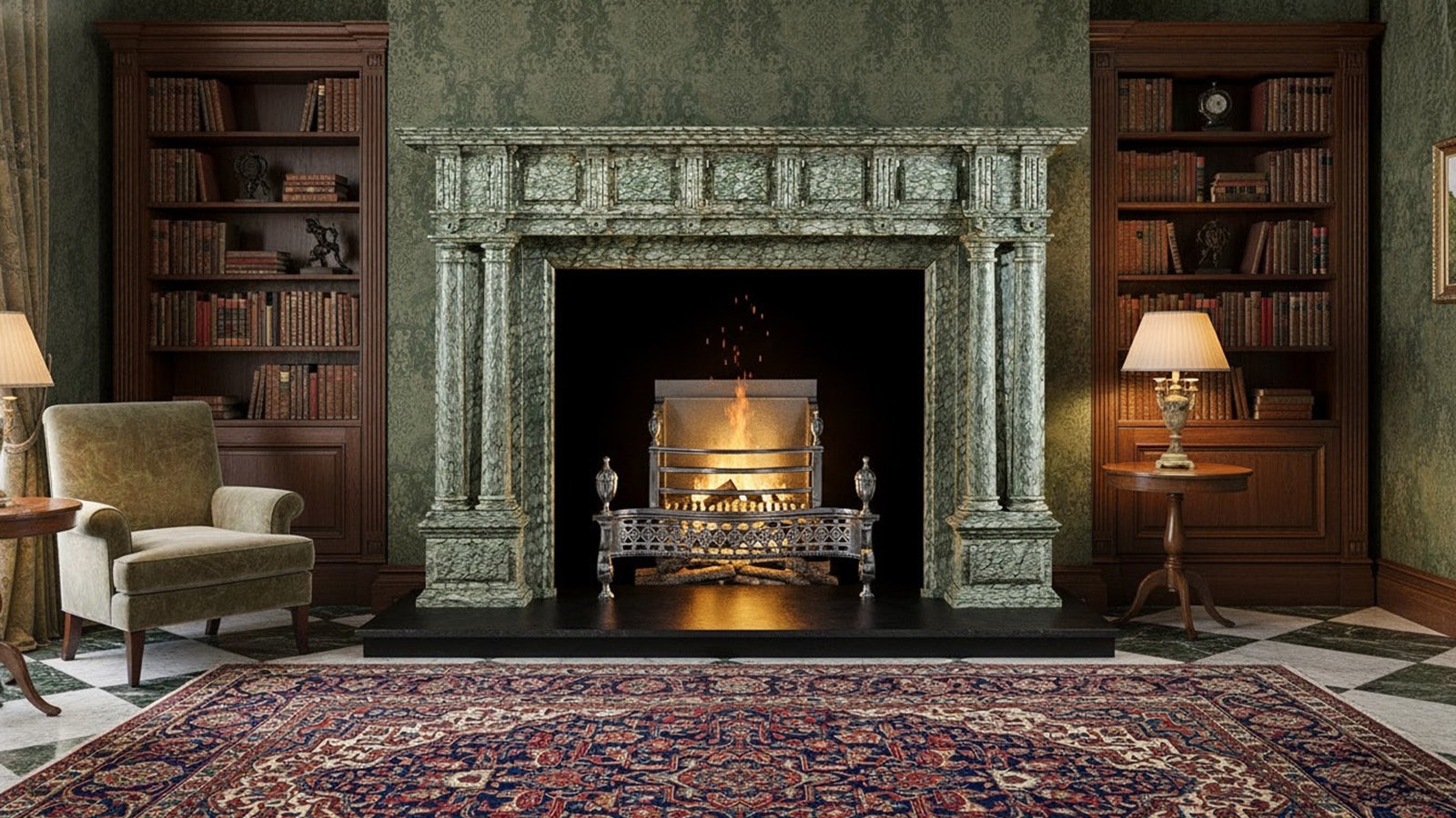 Мраморный портал для обрамления камина Karen Fregio был вырезан из цельного блока натурального камня - мрамора Cipollino Dorato (ИТАЛИЯ), зеленого цвета, c стабильный пятнистой текстурой. Этот каминный портал с орнаментом может быть использован как для облицовки дровяной, электрической или биотопки, так и в качестве отдельно стоящего декоративного камина. Также вы можете заказать у нас производство этого портала по индивидуальным размерам, дизайну или из другого материала изготовления. Для того, чтобы она оптимальным образом вписалась в интерьер места установки как с точки зрения дизайна, так и путем точного соответствия необходимым вам техническим и физическим параметрам изделия. При этом производство под заказ есть смысл планировать только в случае, когда у вас есть запас по времени 90 дней и более с момента согласования всех параметров заказного изделия и подписания Договора Поставки.