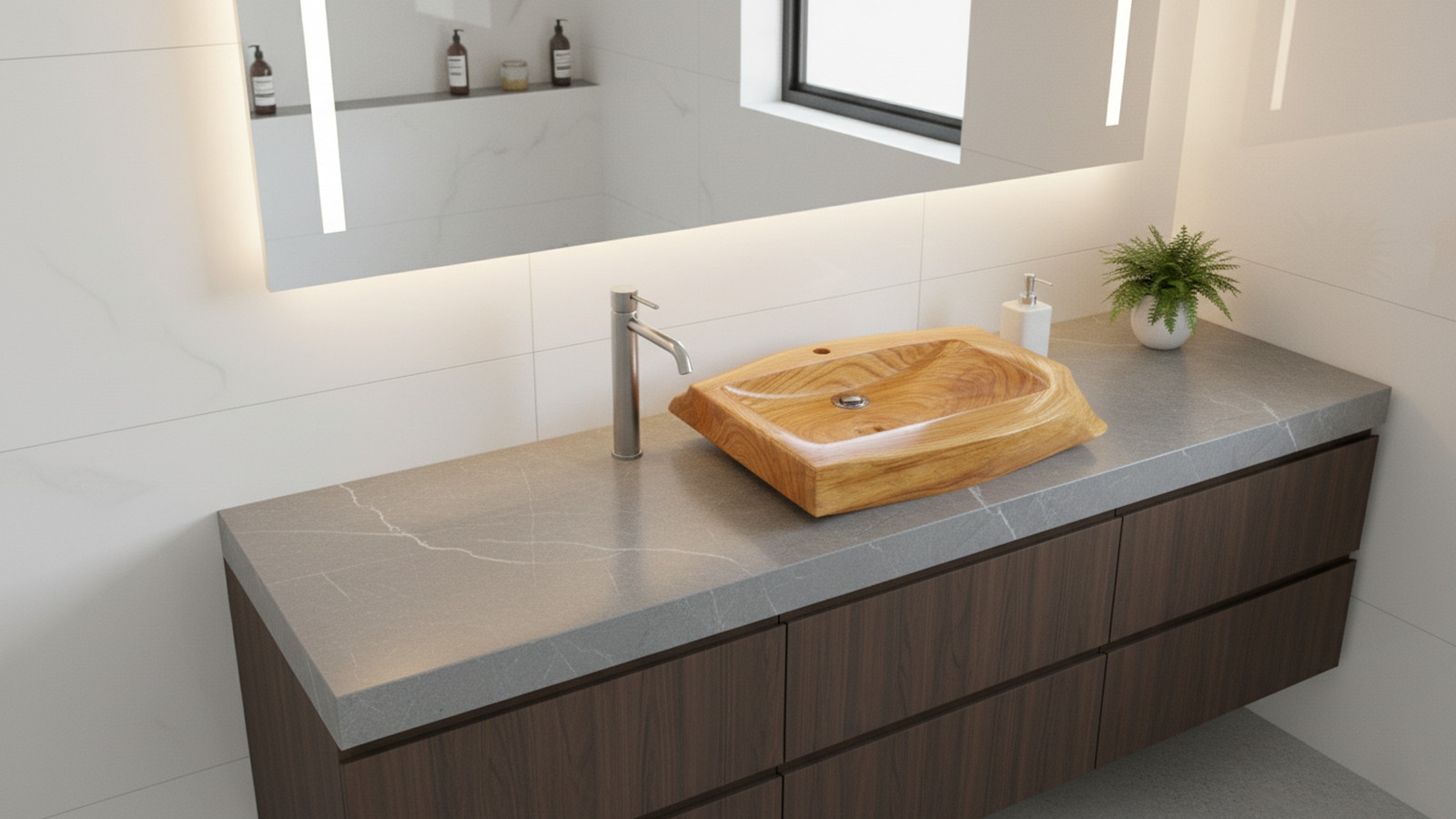 Накладная раковина Labrado выпилена из ламелей натурального дерева дуба Rame (РОССИЯ) коричневого цвета c стабильный древесной текстурой. Эта деревянная мойка прямоугольной формы с глянцевой фактурой может быть установлена на обычную подставку, тумбу или столешницу в ванной комнате. Также вы можете заказать у нас производство такой раковины под заказ по индивидуальным размерам, дизайну или из другого материала изготовления. Для того, чтобы она оптимальным образом вписалась в интерьер места установки как с точки зрения дизайна, так и путем точного соответствия необходимым вам техническим и физическим параметрам изделия. При этом производство под заказ есть смысл планировать только в случае, когда у вас есть запас по времени 90 дней и более с момента согласования всех параметров заказного изделия и подписания Договора Поставки.