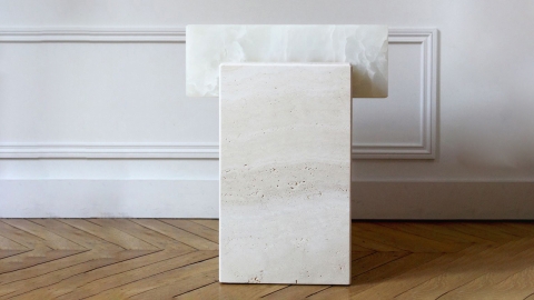 Заказать изготовление дизайнерского стола Ladrillo в сад из бежевого травертина Classico Romano