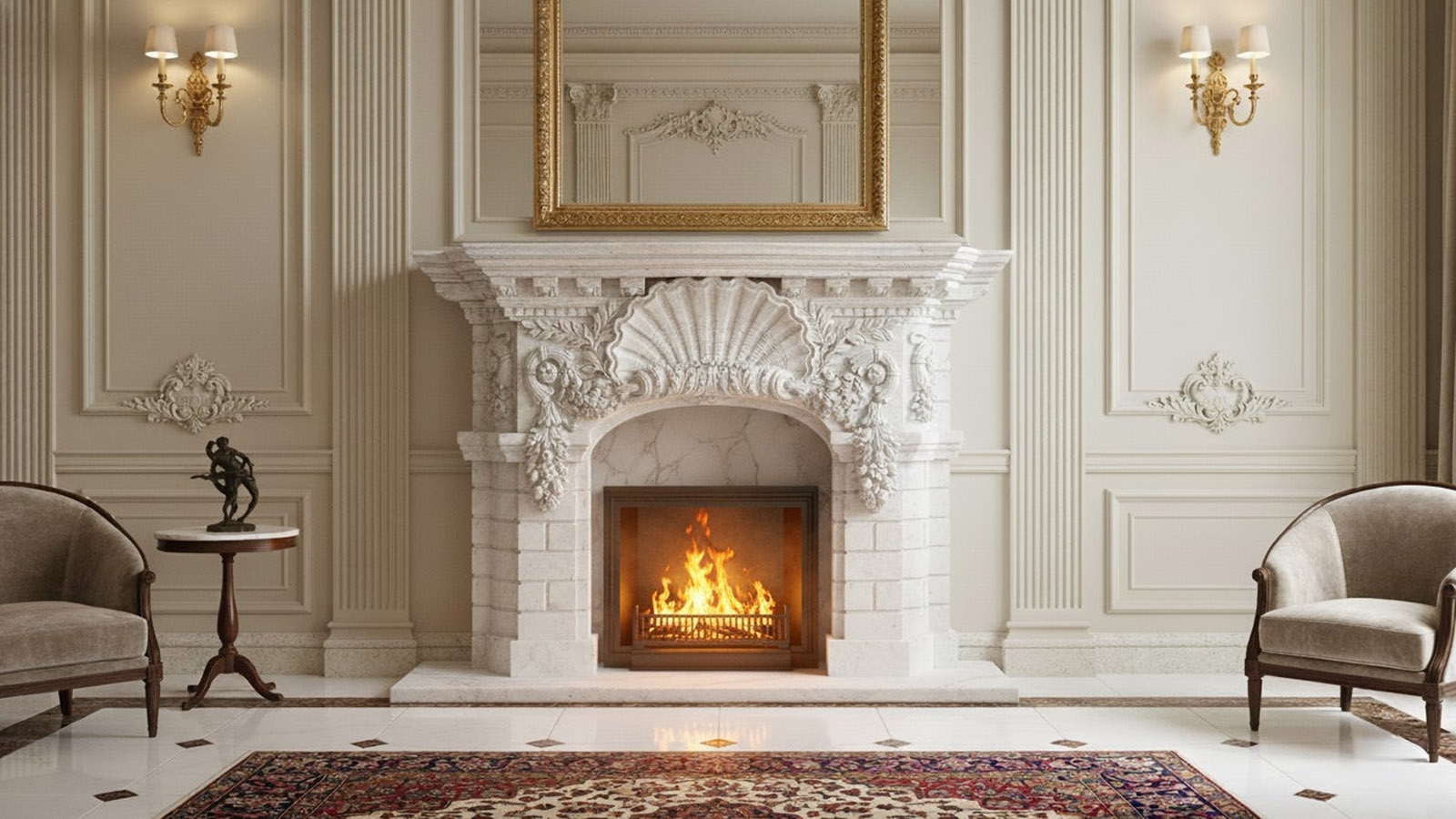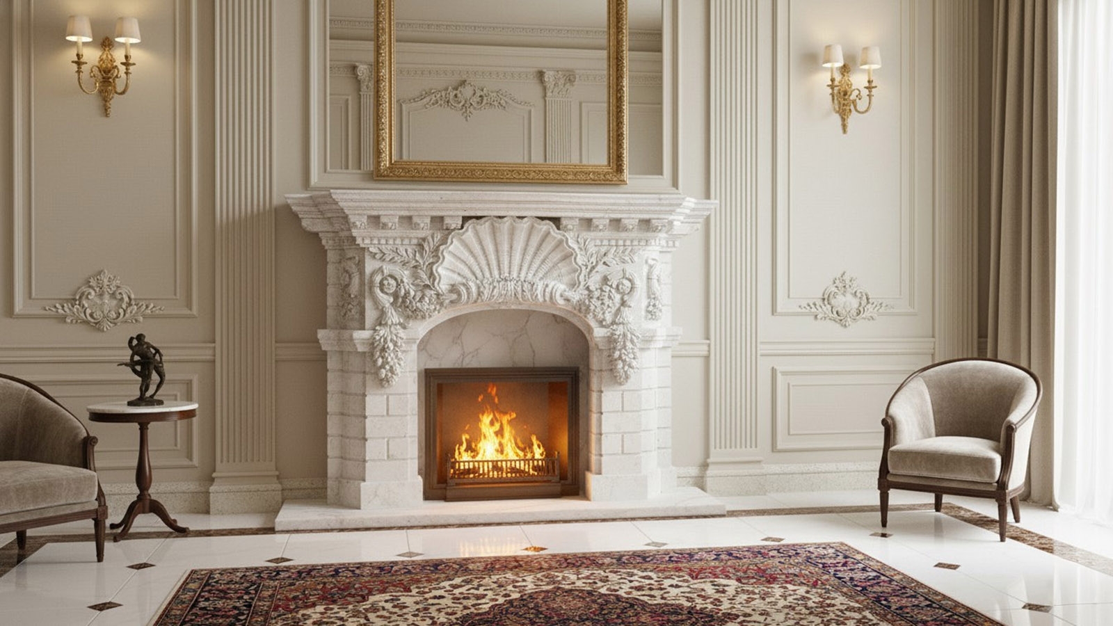 Мраморный портал для обрамления камина Lana был вырезан из цельного блока натурального камня - мрамора Bianco Extra (ИСПАНИЯ), белого цвета, c стабильный с прожилками текстурой. Этот каминный портал с художественной резной фактурой может быть использован как для облицовки дровяной, электрической или биотопки, так и в качестве отдельно стоящего декоративного камина. Также вы можете заказать у нас производство этого портала по индивидуальным размерам, дизайну или из другого материала изготовления. Для того, чтобы она оптимальным образом вписалась в интерьер места установки как с точки зрения дизайна, так и путем точного соответствия необходимым вам техническим и физическим параметрам изделия. При этом производство под заказ есть смысл планировать только в случае, когда у вас есть запас по времени 90 дней и более с момента согласования всех параметров заказного изделия и подписания Договора Поставки.