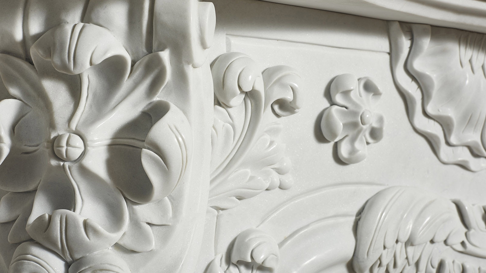 Мраморный портал для обрамления камина Leon был вырезан из цельного блока натурального камня - мрамора Clouds (ИСПАНИЯ), белого цвета, c непостоянный пятнистой текстурой. Этот каминный портал с художественной резной фактурой может быть использован как для облицовки дровяной, электрической или биотопки, так и в качестве отдельно стоящего декоративного камина. Также вы можете заказать у нас производство этого портала по индивидуальным размерам, дизайну или из другого материала изготовления. Для того, чтобы она оптимальным образом вписалась в интерьер места установки как с точки зрения дизайна, так и путем точного соответствия необходимым вам техническим и физическим параметрам изделия. При этом производство под заказ есть смысл планировать только в случае, когда у вас есть запас по времени 90 дней и более с момента согласования всех параметров заказного изделия и подписания Договора Поставки.