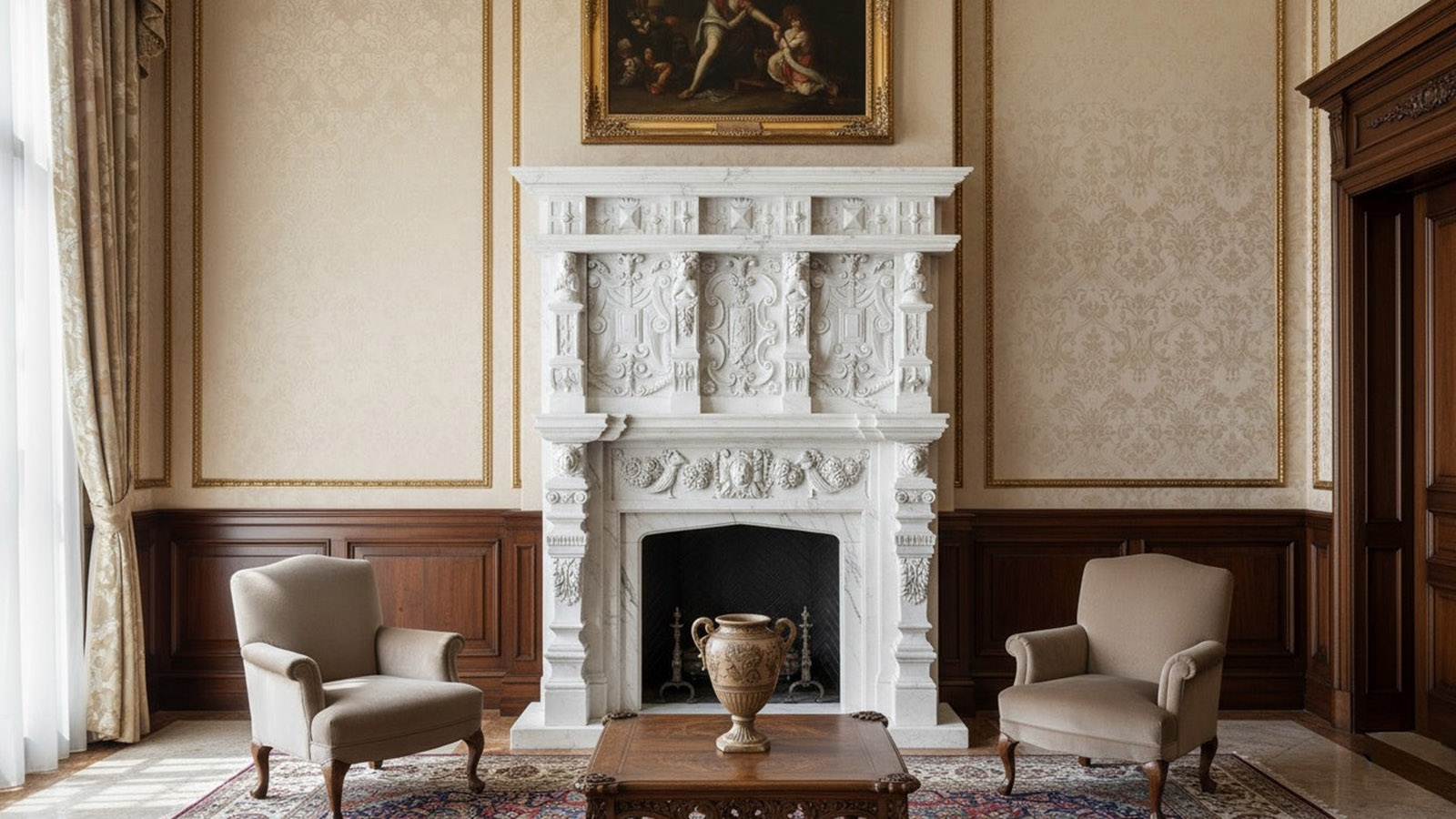 Этот каминный портал с художественной резной фактурой может быть использован как для облицовки дровяной, электрической или биотопки, так и в качестве отдельно стоящего декоративного камина. мраморный портал для обрамления камина Neru был вырезан из цельного блока натурального камня - мрамора Bianco Extra (ИСПАНИЯ), белого цвета, c стабильный с прожилками текстурой. Также вы можете заказать у нас производство этого камина по индивидуальным размерам, дизайну или из другого материала изготовления. Для того, чтобы она оптимальным образом вписалась в интерьер места установки как с точки зрения дизайна, так и путем точного соответствия необходимым вам техническим и физическим параметрам изделия. При этом производство под заказ есть смысл планировать только в случае, когда у вас есть запас по времени 90 дней и более с момента согласования всех параметров заказного изделия и подписания Договора Поставки.