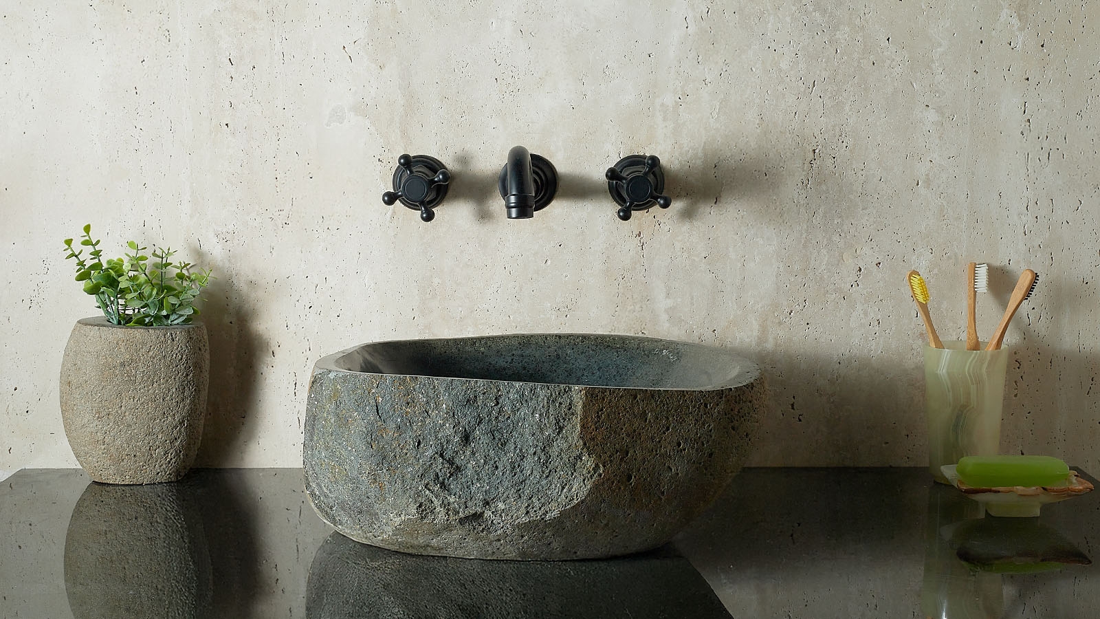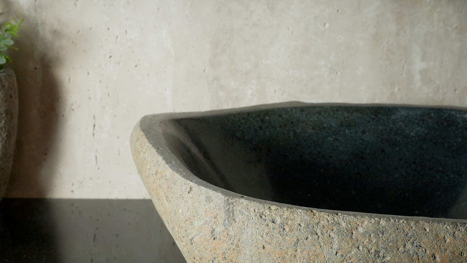 Накладная раковина Piedra S351 вырезана из речного камня гранита Gris (ИНДОНЕЗИЯ) серого цвета c хаотичный зернистой текстурой и существует в единственном экземпляре. Эта оригинальная гранитная мойка с природной фактурой может быть установлена на любую подставку, тумбу или столешницу в ванной комнате. Также вы можете заказать у нас производство этого изделия по индивидуальным размерам, дизайну или из другого материала изготовления. Для того, чтобы оно оптимальным образом вписалось в интерьер места установки как с точки зрения дизайна, так и путем точного соответствия необходимым вам техническим и физическим параметрам изделия. При этом производство под заказ есть смысл планировать только в случае, когда у вас есть запас по времени 90 дней и более с момента согласования всех параметров заказного изделия и подписания Договора Поставки.