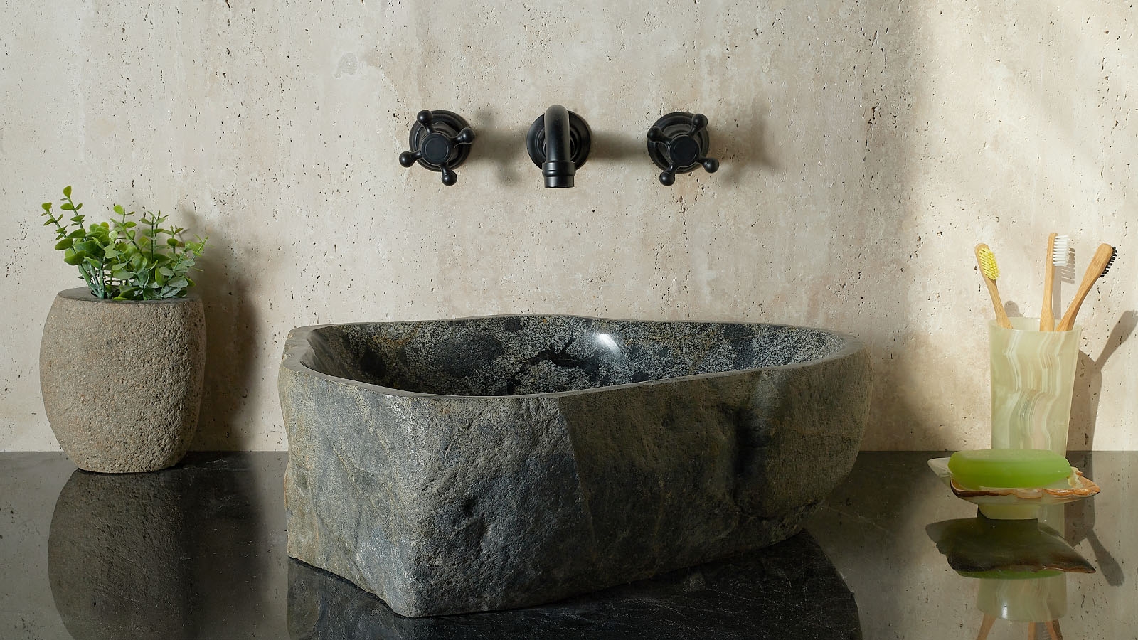 Накладная раковина Piedra S356 вырезана из речного камня гранита Gris (ИНДОНЕЗИЯ) серого цвета c хаотичный зернистой текстурой и существует в единственном экземпляре. Эта оригинальная гранитная мойка с природной фактурой может быть установлена на любую подставку, тумбу или столешницу в ванной комнате. Также вы можете заказать у нас производство этого изделия по индивидуальным размерам, дизайну или из другого материала изготовления. Для того, чтобы оно оптимальным образом вписалось в интерьер места установки как с точки зрения дизайна, так и путем точного соответствия необходимым вам техническим и физическим параметрам изделия. При этом производство под заказ есть смысл планировать только в случае, когда у вас есть запас по времени 90 дней и более с момента согласования всех параметров заказного изделия и подписания Договора Поставки.
