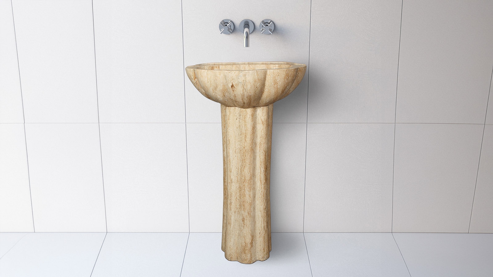 Раковина с пьедесталом Regan из травертина Classico Romano с матовой фактурой Matt