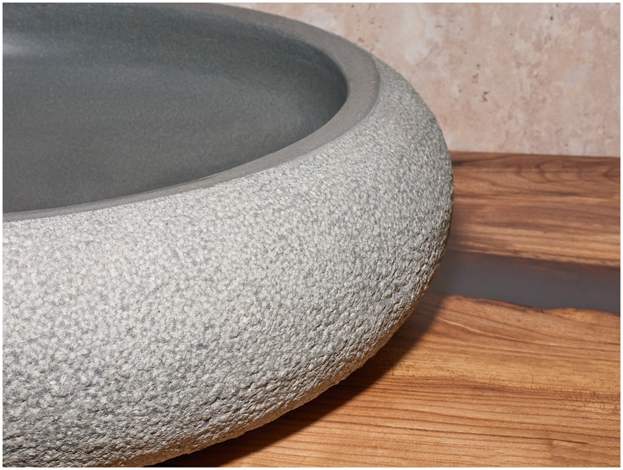 Раковина Ronda из андезита Green Andesite с оплавленной огнем поверхностью Burning