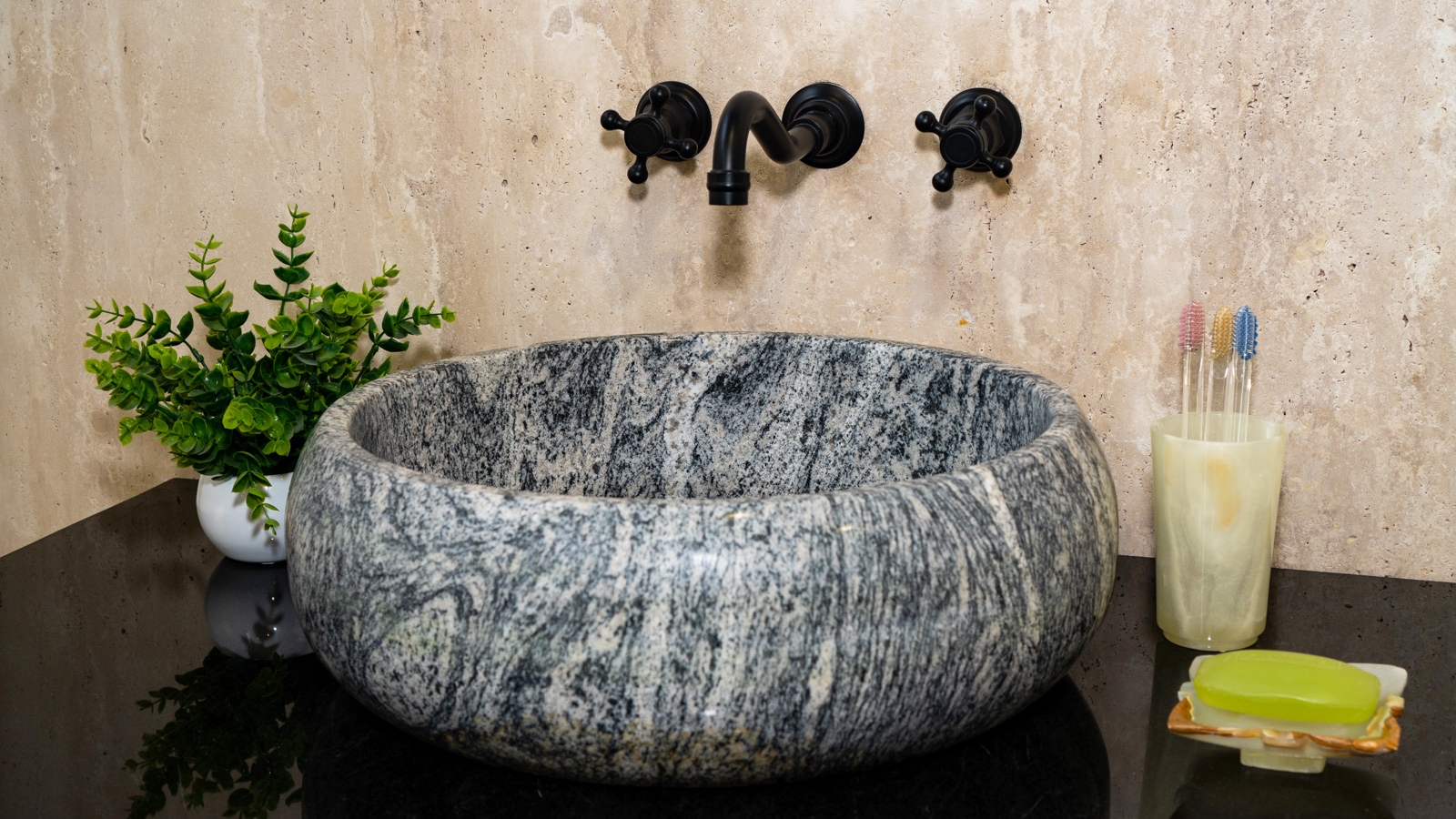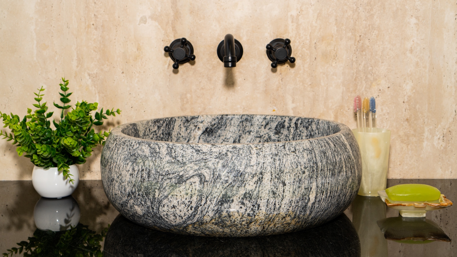 Каменная раковина Ronda из голубого гранита Spray Wave 003027111