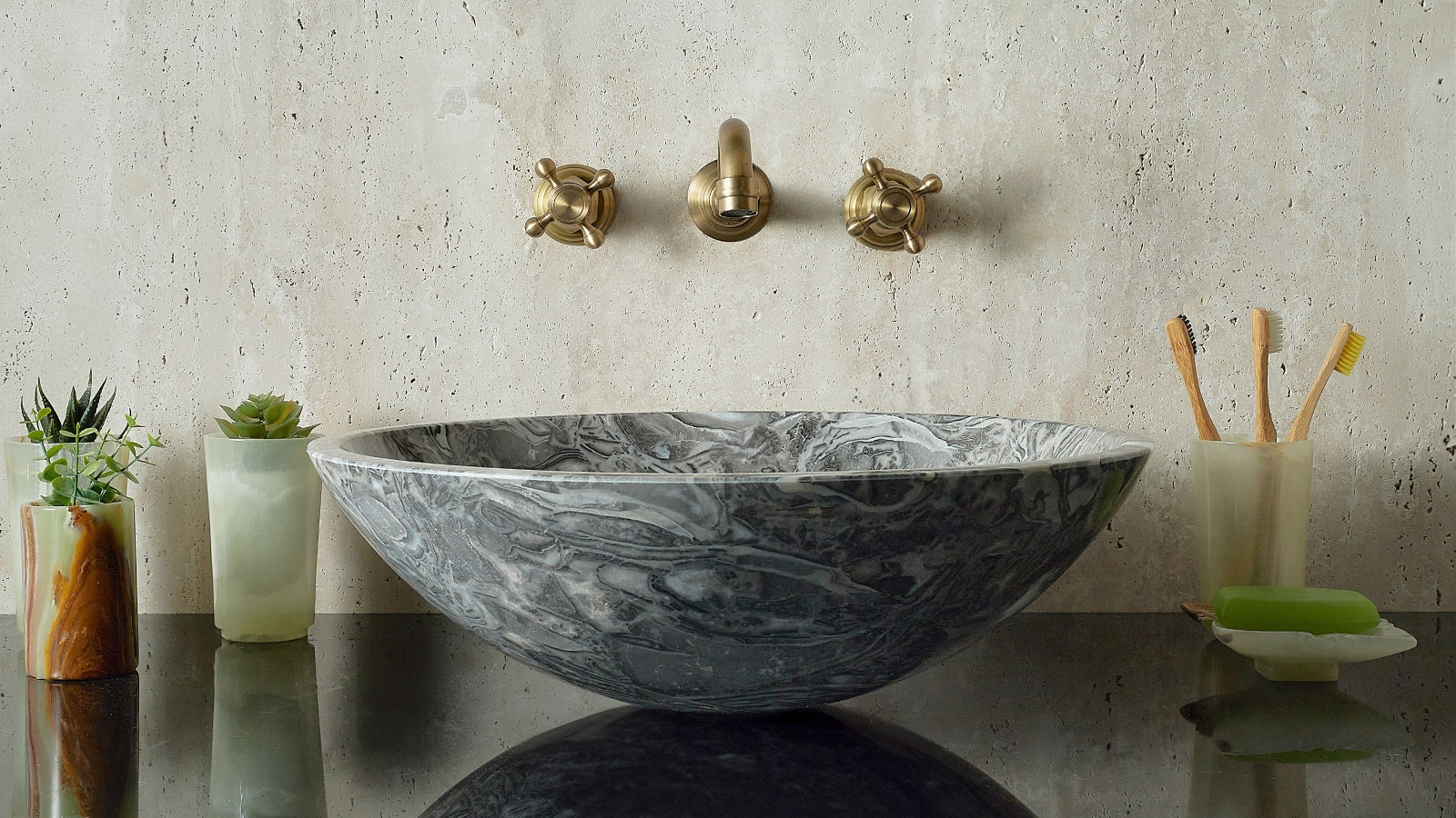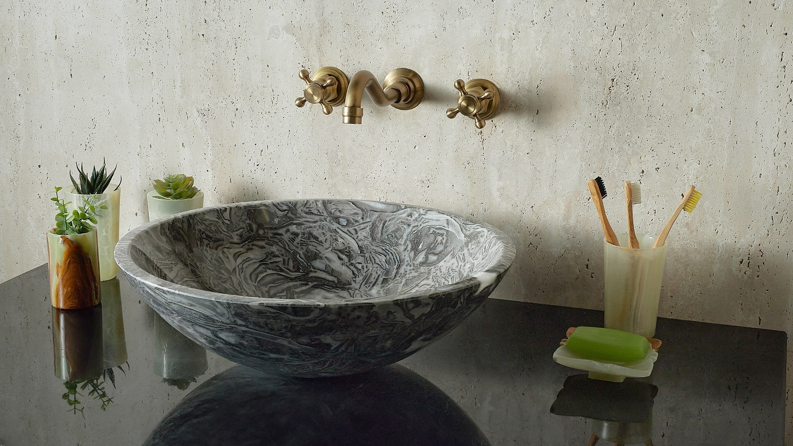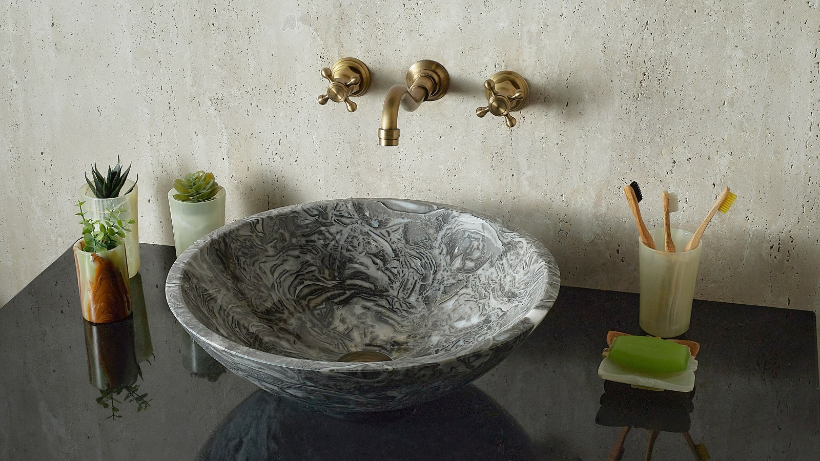 Каменная раковина Sfera из серого мрамора Overlord Flower 001019111