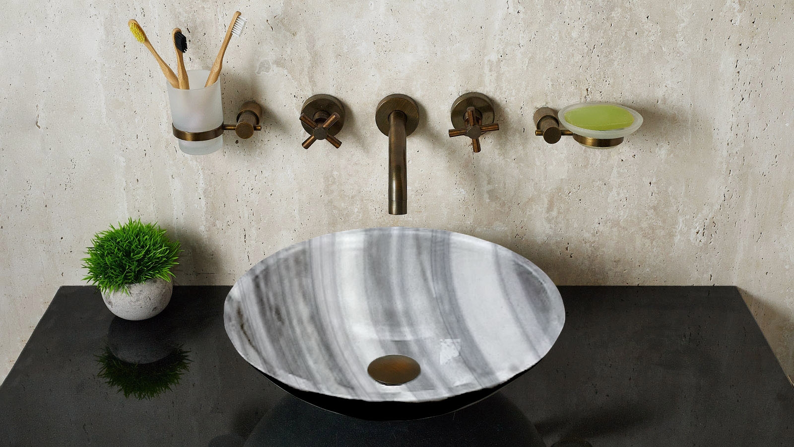 Серая раковина Sfera из натурального мрамора Striato Olimpico 001458111